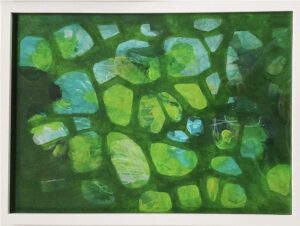 Description: Framed in white wooden frame