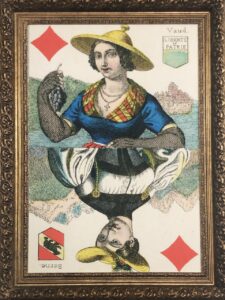 Antique Queen Of Diamonds Pack Of Cards That Features Views And Costumes From Switzerland-1880.