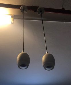 Artist/Content: Egg shaped metal hanging light