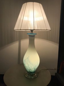 Artist/Content: Blue and White Glazed Ceramic Table Lamp with Off-White Shade