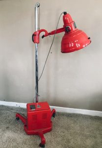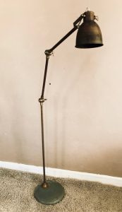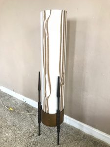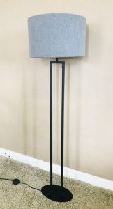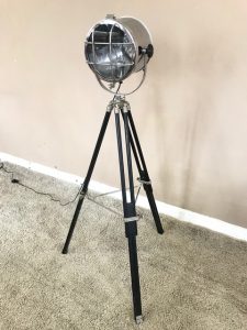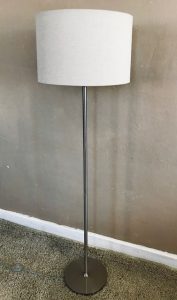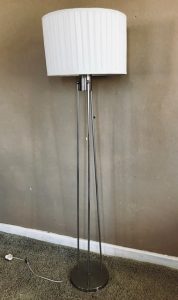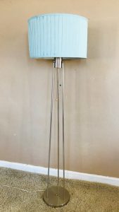 Artist/Content: Silver Tripod Standing Lamp with Turquoise Pleated Drum Shade