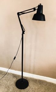 Silver Tripod Standing Lamp with Turquoise Pleated Drum Shade