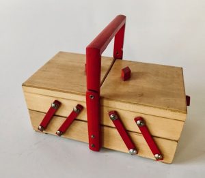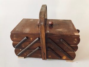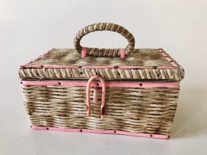 Artist/Content: Wicker Sewing Box with Embroidery Lid