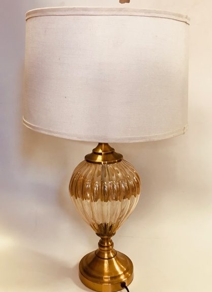 Artist/Content: Amber Glass & Brass Table lamp with off white shade