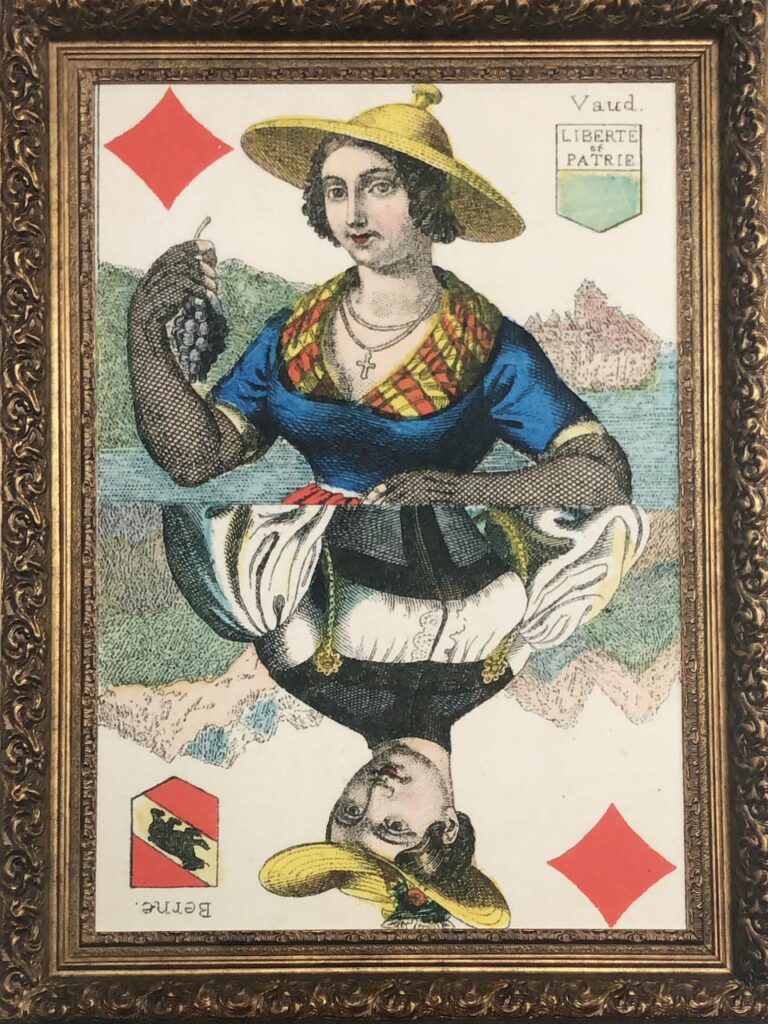 Artist/Content: Antique Queen Of Diamonds Pack Of Cards That Features Views And Costumes From Switzerland-1880.
