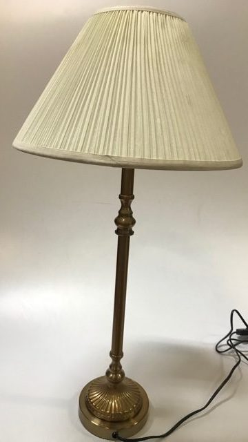Artist/Content: Brass lamp with beige pleated shade