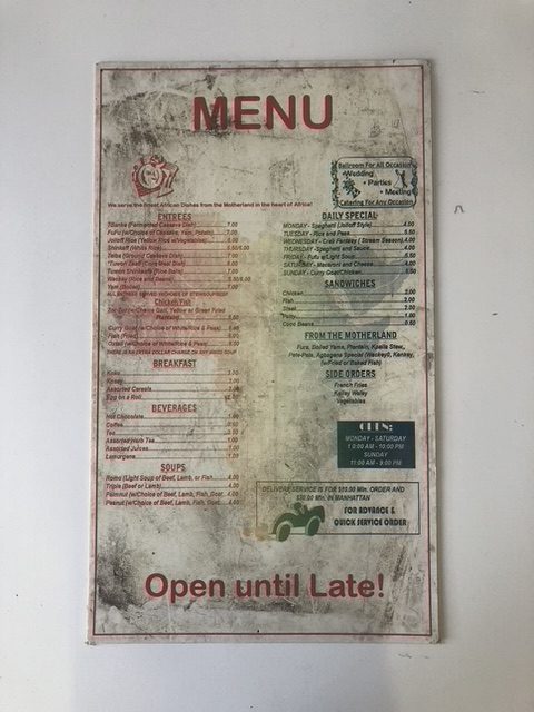 Artist/Content: Food menu