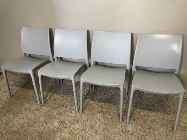 Artist/Content: Grey Plastic Stacking Dining Chairs