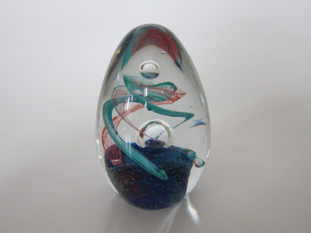 Artist/Content: Murano Blue and Red Swirl Egg Shaped Glass Paperweight