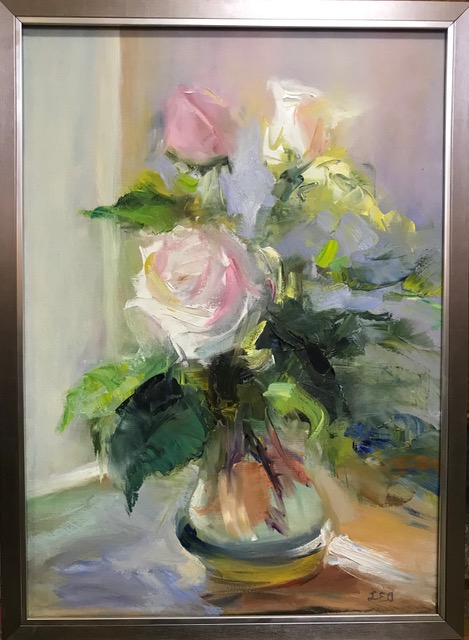 Lilia Eremenko - Pale PInk Roses in Glass Vase