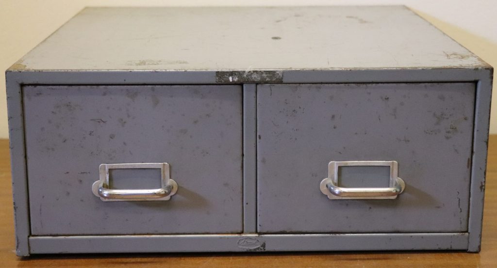 Artist/Content: Metal filing cabinet – 2 drawers