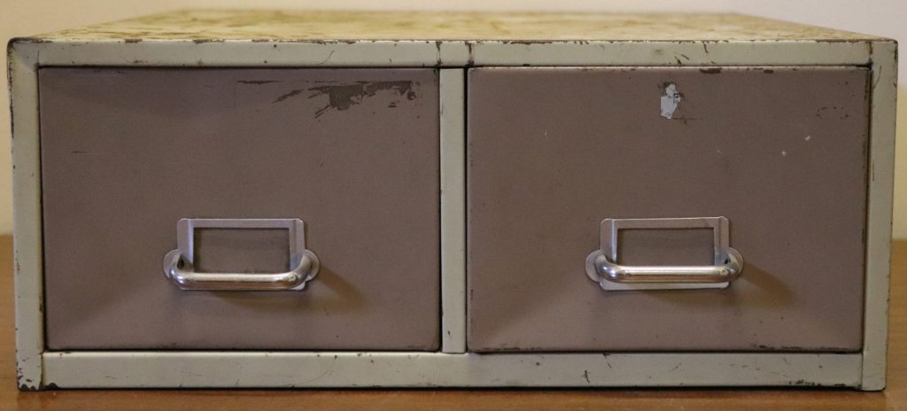 Artist/Content: Metal filing cabinet – 2 drawers