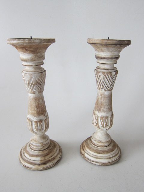 Painted Wooden Carved Candlesticks