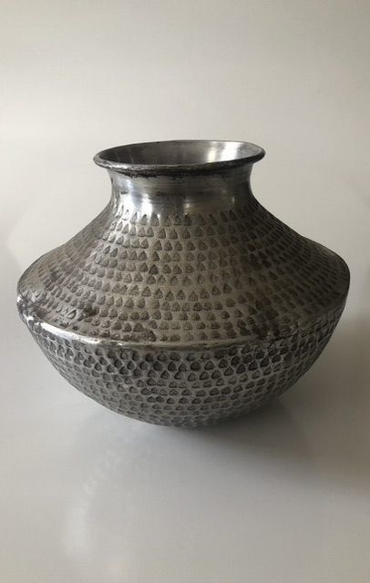 Artist/Content: Pewter vase in flattened urn shape