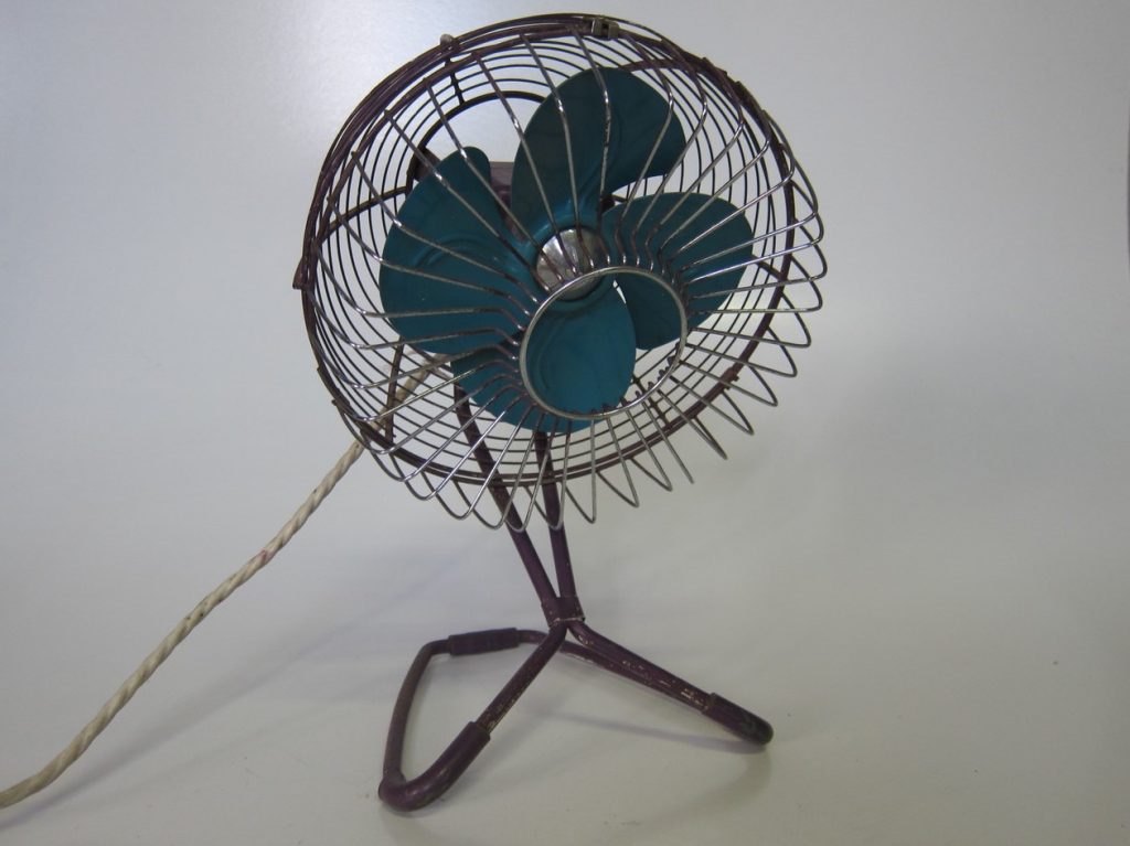 Artist/Content: Purple Frame Table Fan with Turquoise Blades