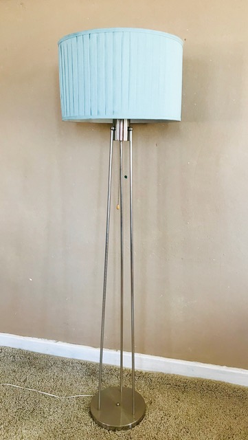 Artist/Content: Silver Tripod Standing Lamp with Turquoise Pleated Drum Shade