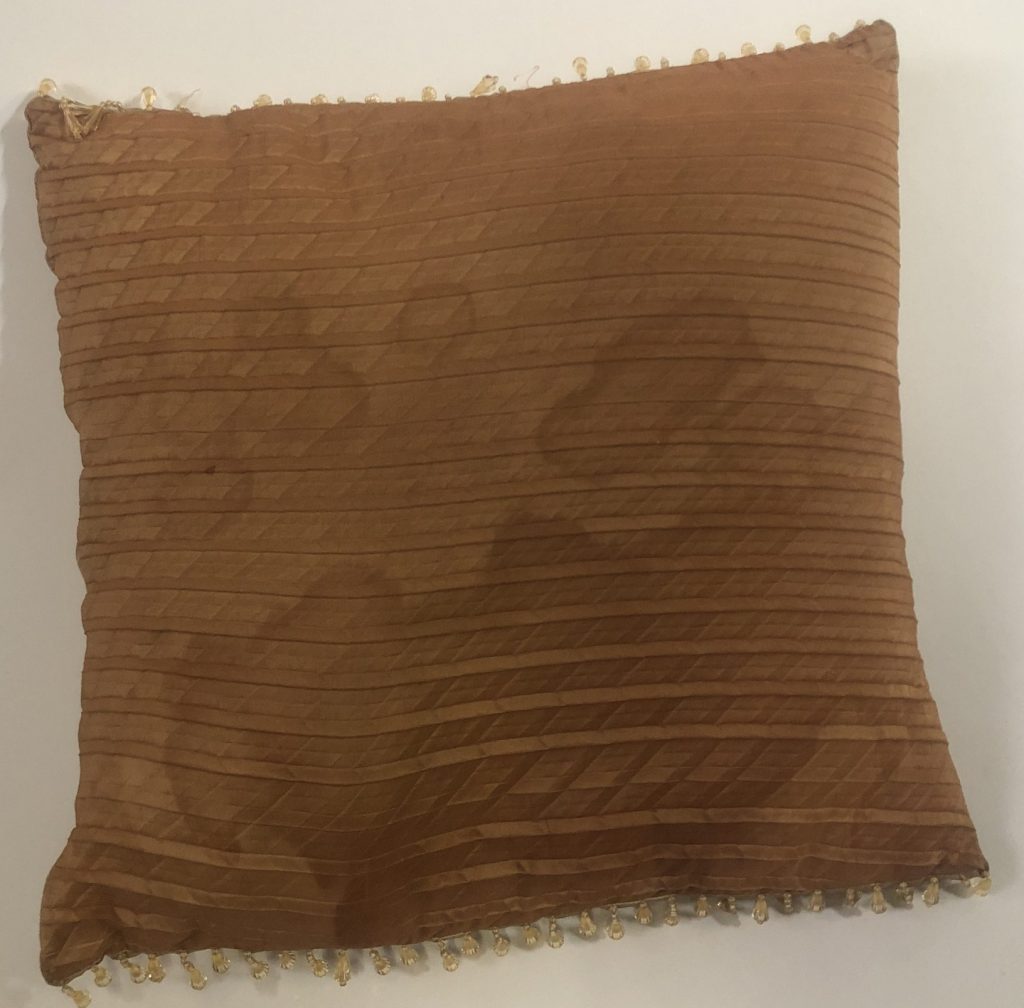 Artist/Content: Stained Brown Scatter Cushion with Plastic Bead Tassels