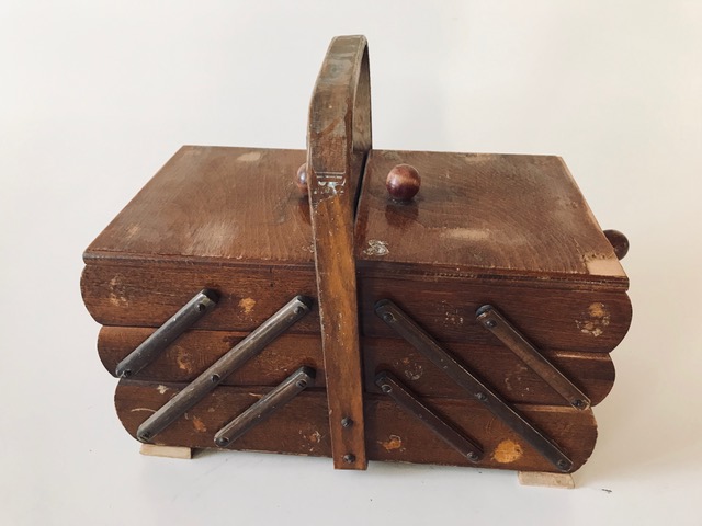 Artist/Content: Tarnished Wooden Cantilever Sewing Box