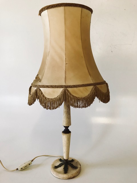 Artist/Content: Vintage Alabaster and Brass Lamp with Original Fringed Shade