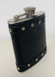Artist/Content: Vintage Black Leather and metal Hip Flask.