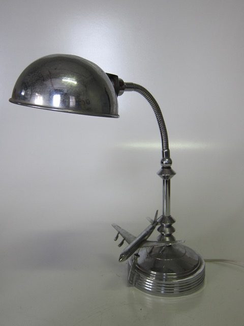Artist/Content: Vintage Gooseneck Desk Lamp with Model Aeroplane on Base