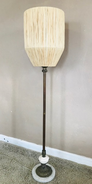Artist/Content: Vintage Marble and Brass Standing Lamp with Raffia Inverted Shade