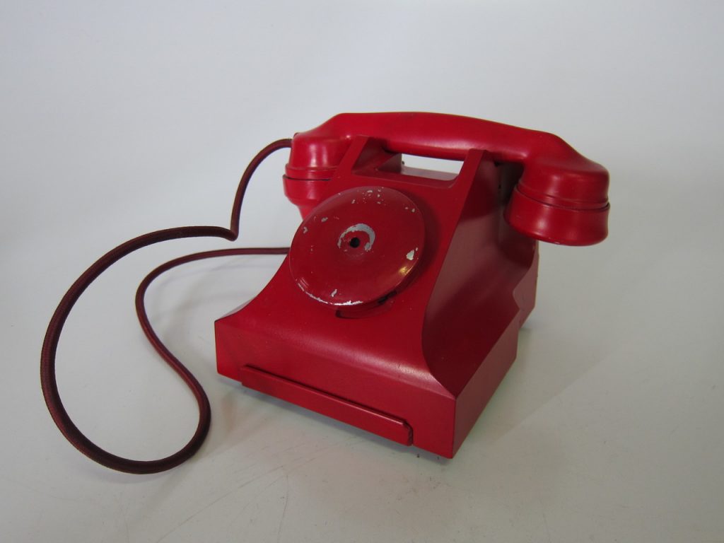 Artist/Content: Vintage Red Rotary Dial Telephone