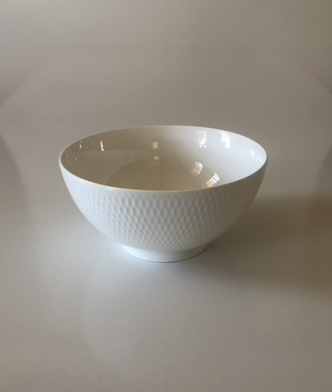 Artist/Content: White ceramic bowl with subtle cross-hatching texture