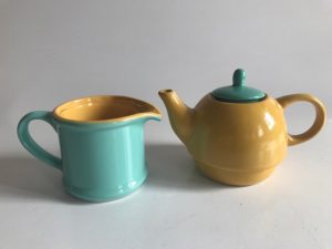 Description: Teapot, milk jug, sugar bowl and 4 tea cups & saucers